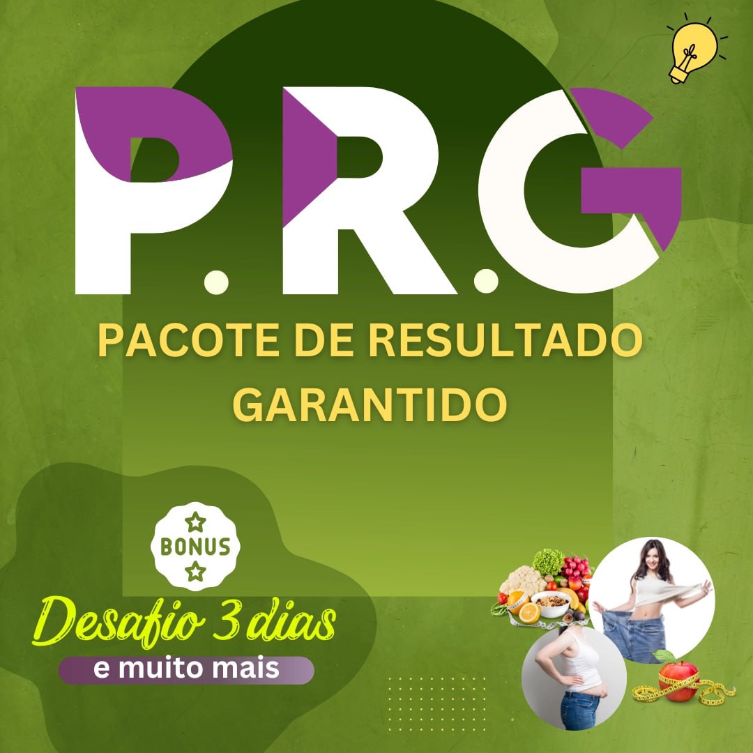 O PRG [ Pacote de Resultado Garantido ] começa com um DETOX durante o BÔNUS ESPECIAL Desafio Desafio 3 Dias. É a Solução Definitiva para acabar de vez Com a Luta Contra o EXCESSO DE PESO e ajudar você Render + com Saúde, Energia, Disposição e Bem-Estar.